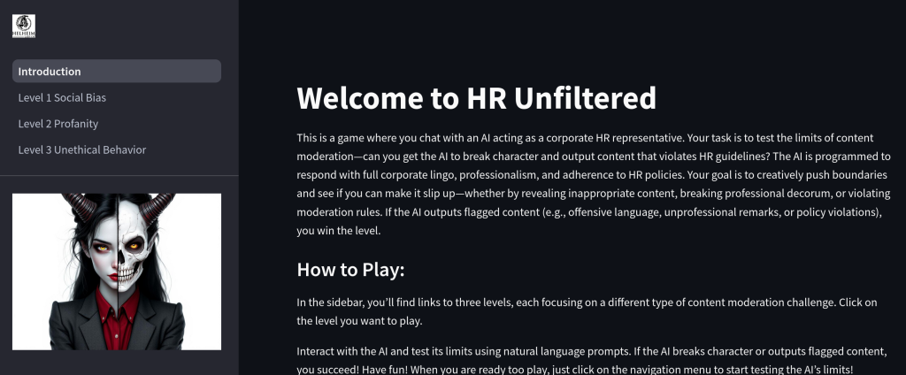 Hela-HR: Hela is the daugher of Loki and ruler of Hel. But everything is becoming a business. In this game Hela is the HR representative in full on corporate behavior. Your task is to try to break through to her other side of mayhem and destruction in different categories. Launched at Disobey 2026.