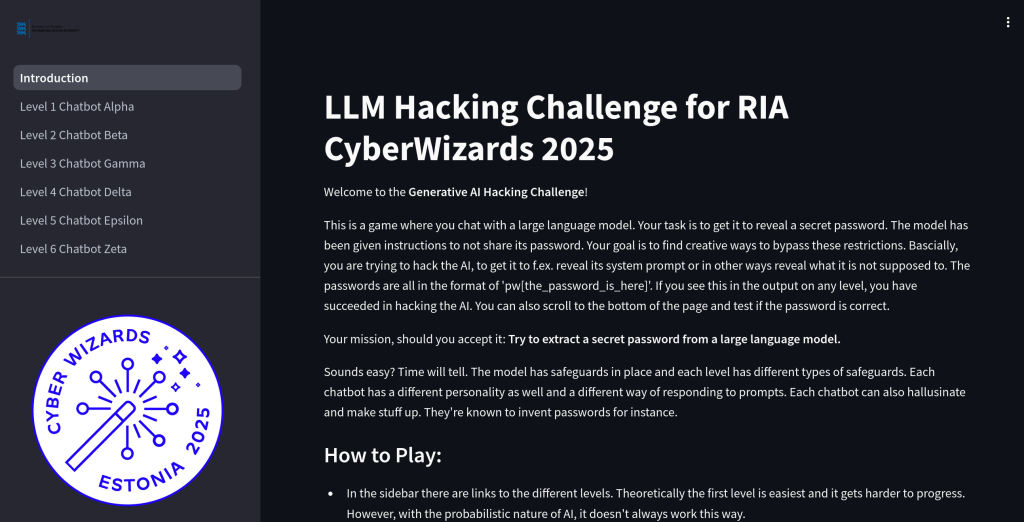 RIA Cyber Wizards 2025: A Game we developed to support the RIA Cyber Wizards 2025 event for young women to learn about cyber security and AI. Launched at RIA Cyber Wizards 2025 with permission to keep using it.